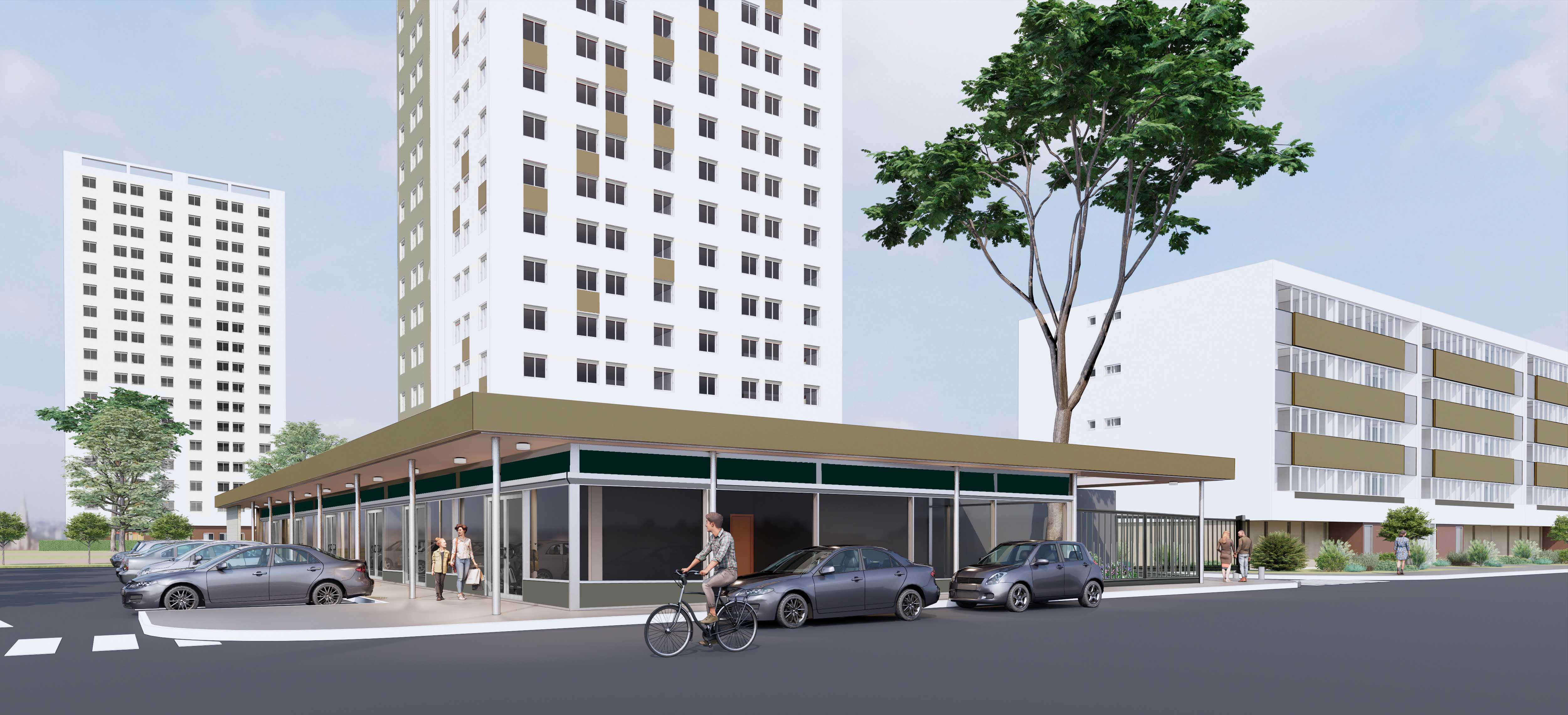 Réhabilitation énergétique de 589 logements en milieu occupé, création de 10 logements PMR et aménagement du centre commercial.